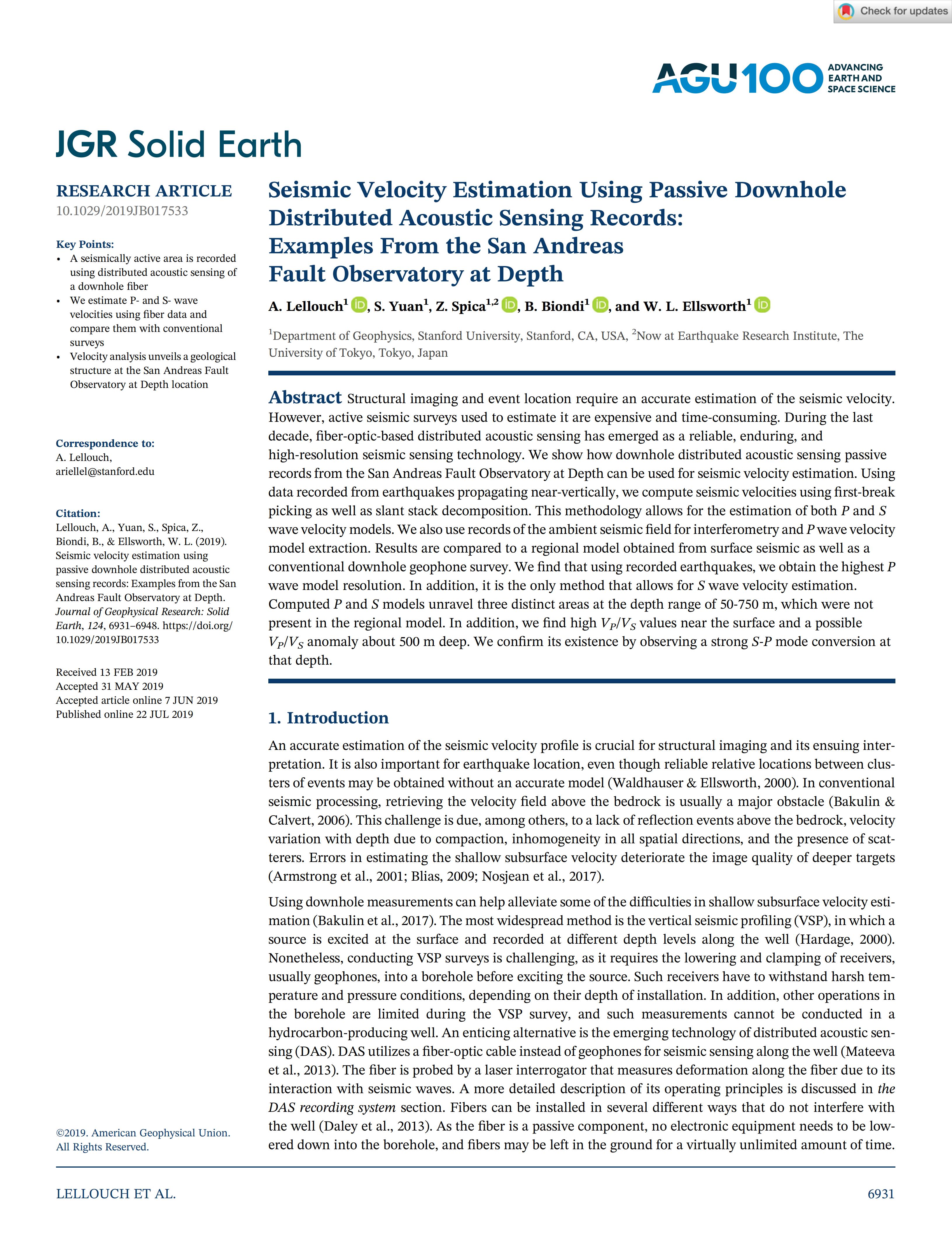 Seismic Velocity Estimation Using Passive Downhole Distributed Acoustic Sensing Records: Examples From the San Andreas Fault Observatory at Depth